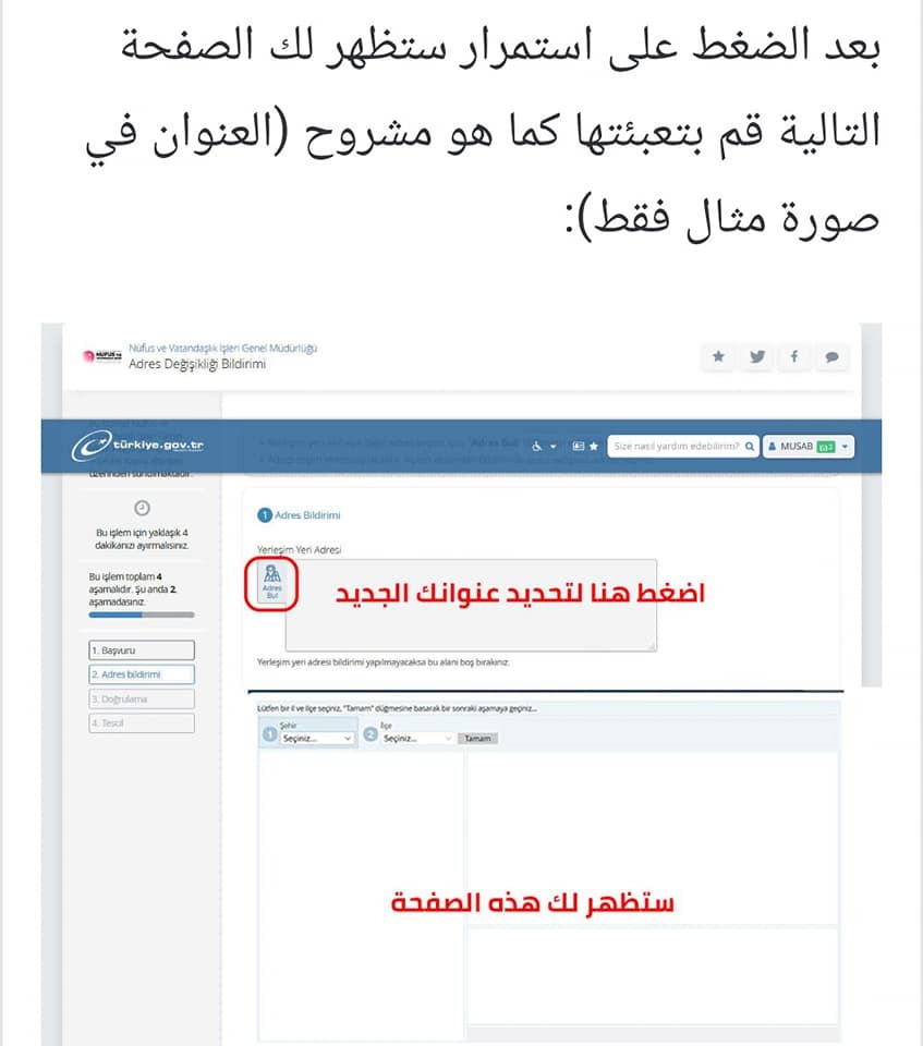 تغيير عنوان السكن عن طريق الأي دولات "E- devlet"