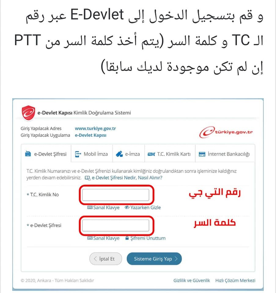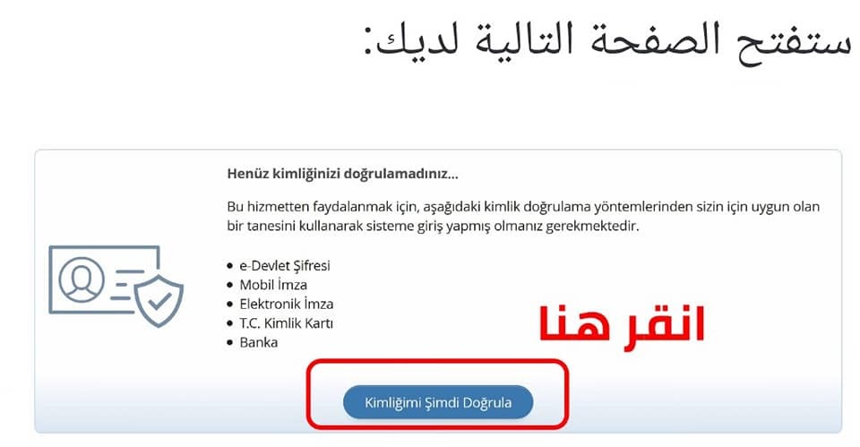 - بعد الضغط على الرابط سوف تظهر لكم هذه الصفحة، تقومون بالضغط على هذه الكلمة kimliğimi şimdi Doğrula