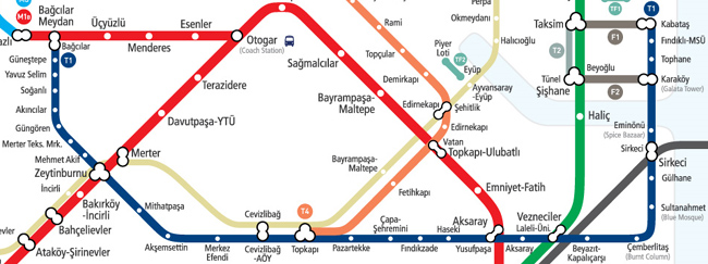 3 - خط T4 يربط بين محطة توبكابي Topkapi ومحطة مسجد السلام Mescid-i Selam