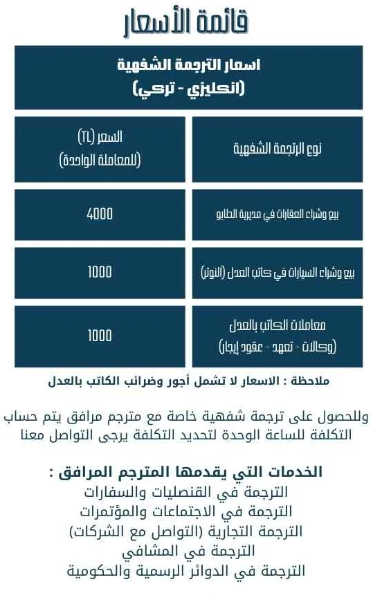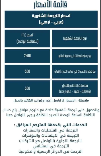 - Offers translation services for various languages including English, Turkish, and Arabic. It also serves as a legal consultant for sworn translation.
