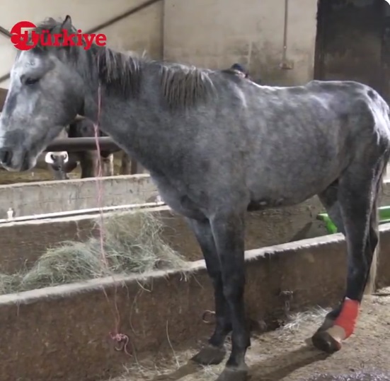 تداول رواد مواقع التواصل الإجتماعي في تركيا، مقطع فيديو محزن ظهر فيه حصان متجمد من شدة البرد، وهو يقف في حي شكري باشا بمنطقة ياقوتيا بمحافظة أرضروم التركية.